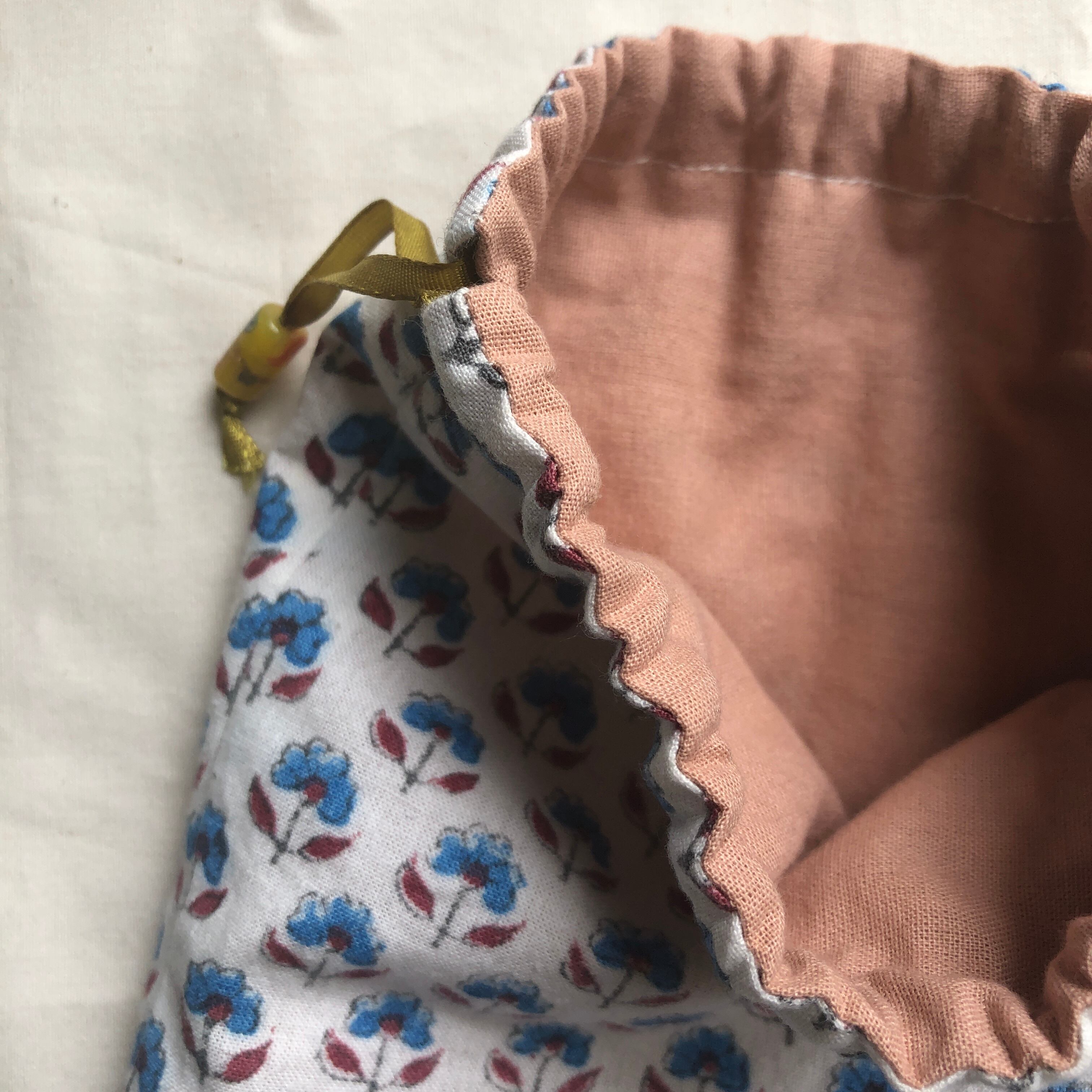 インド綿を使用した小さめの巾着袋です。