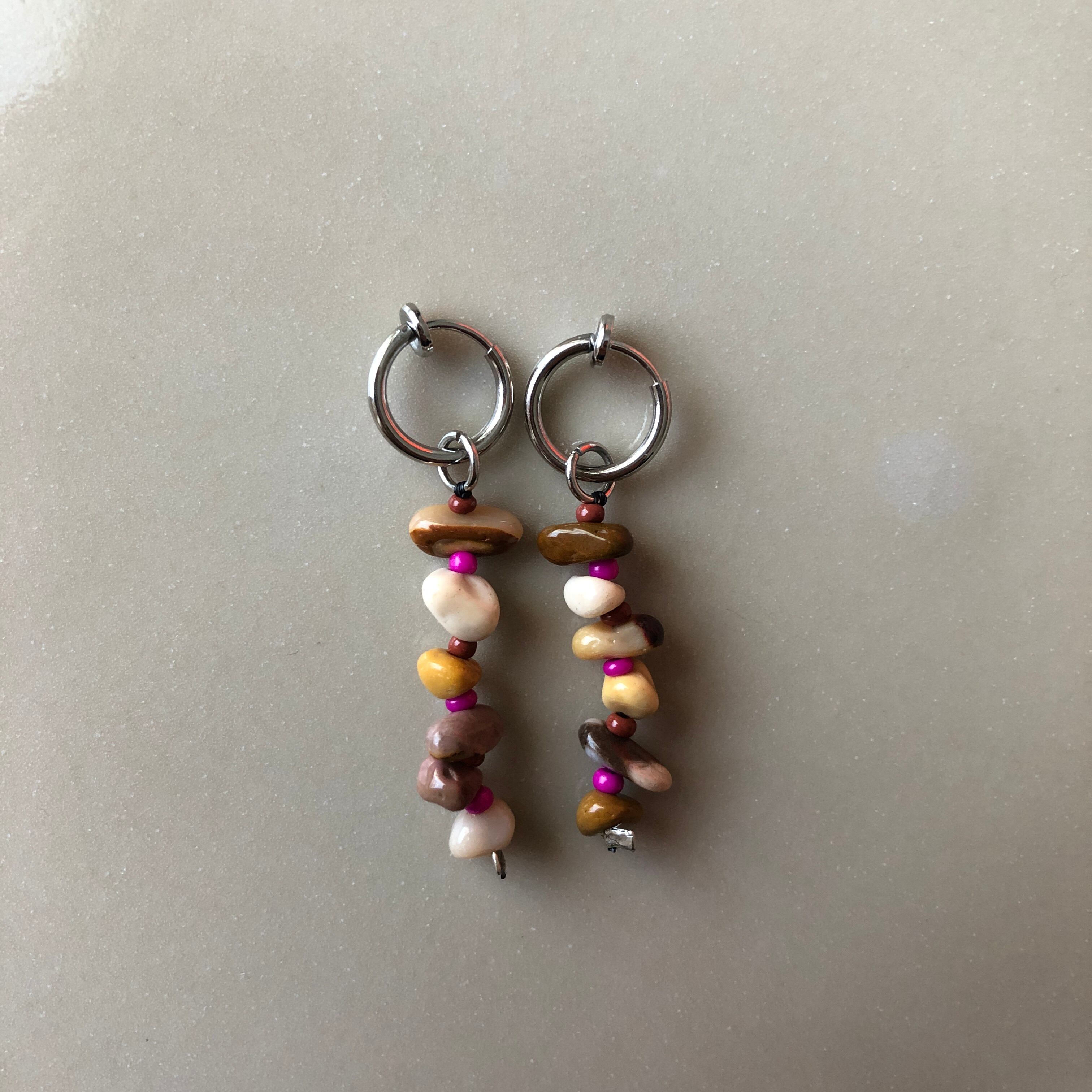 ムーアカイトとカラーシードビーズを組み合わせて、かすかに揺れる長さのイヤリングを作りました。