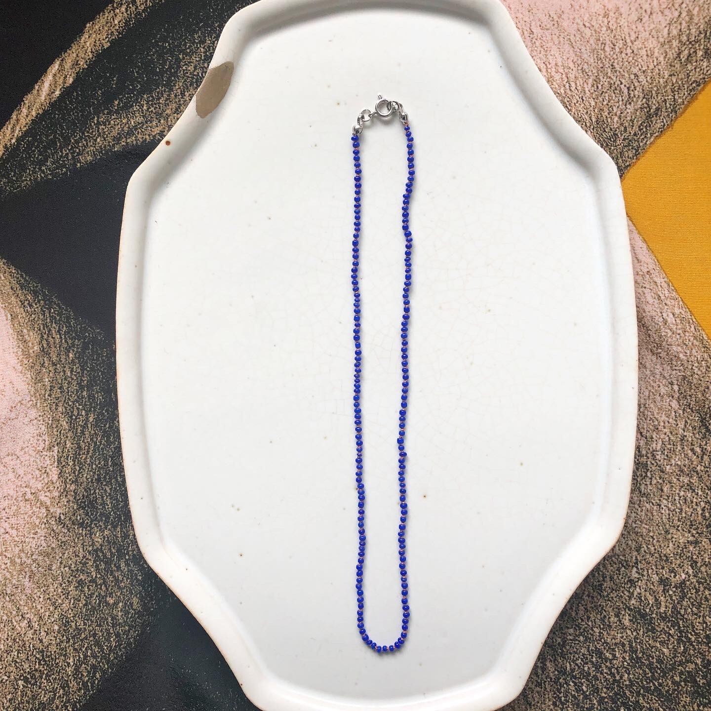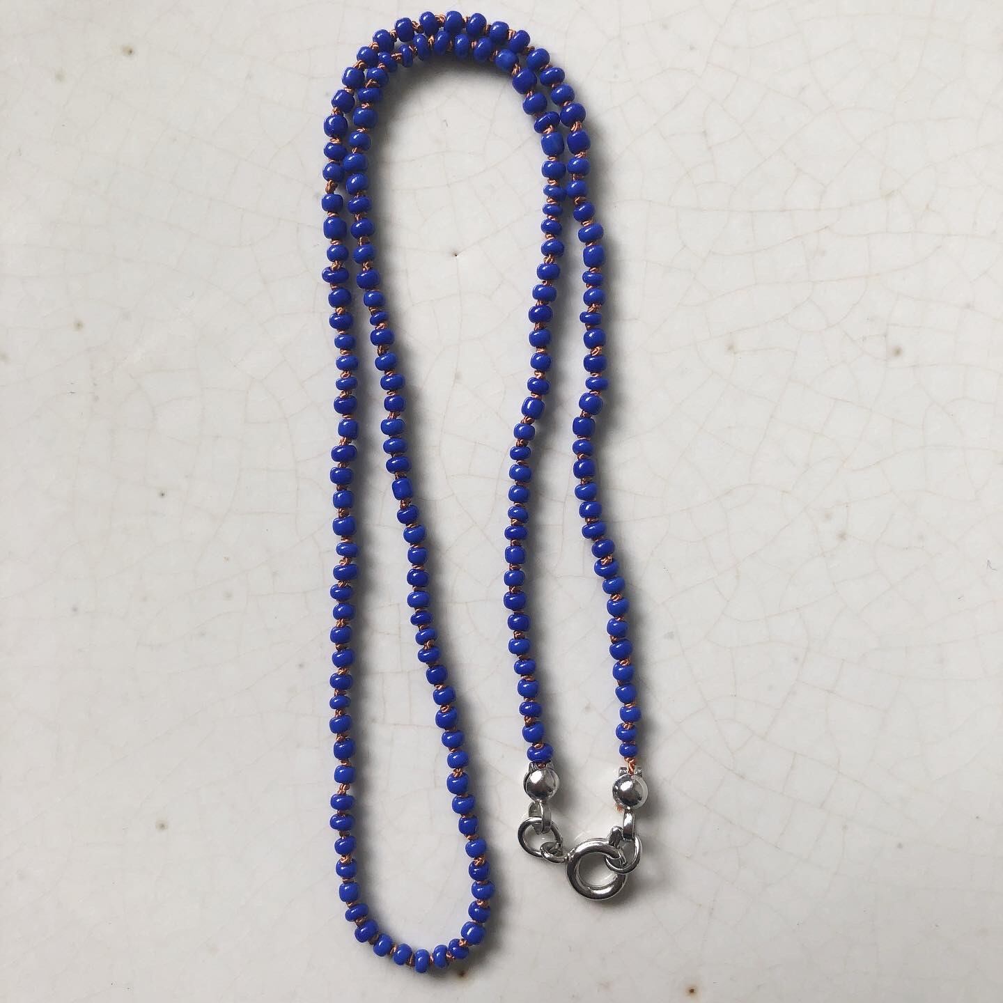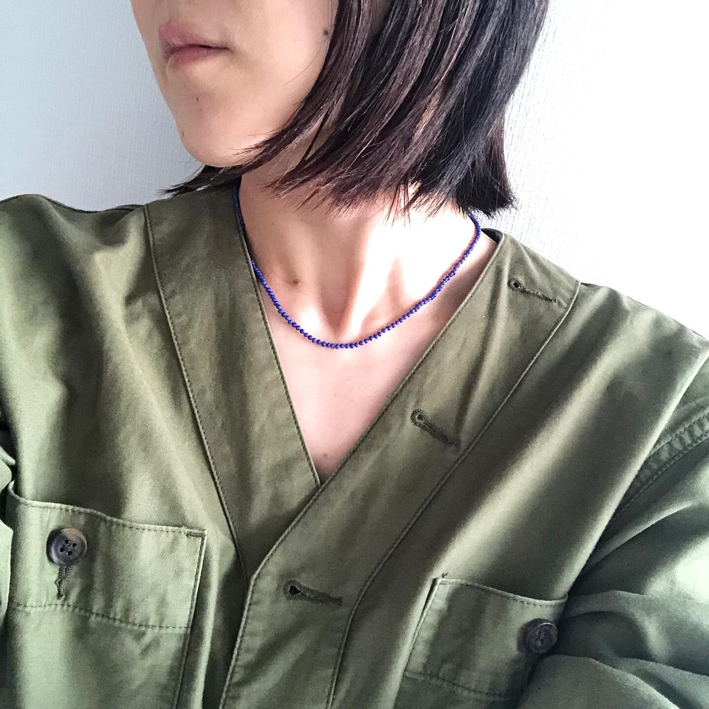 シルク糸を使用したノッティングコードネックレスは手間がかかりますが、ただ糸にビーズを通しただけのものとは違う独特の表情を出すことができます。