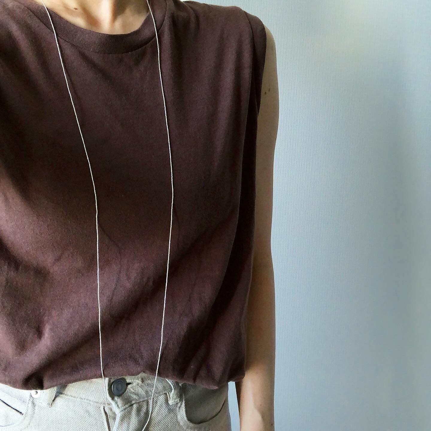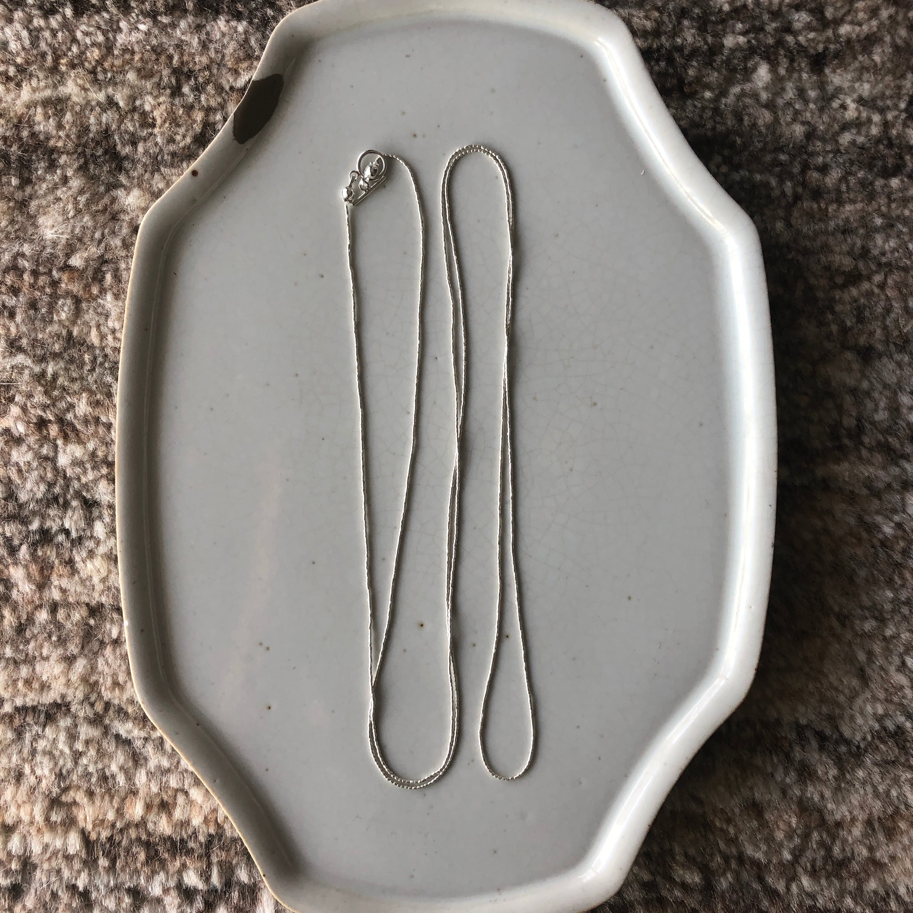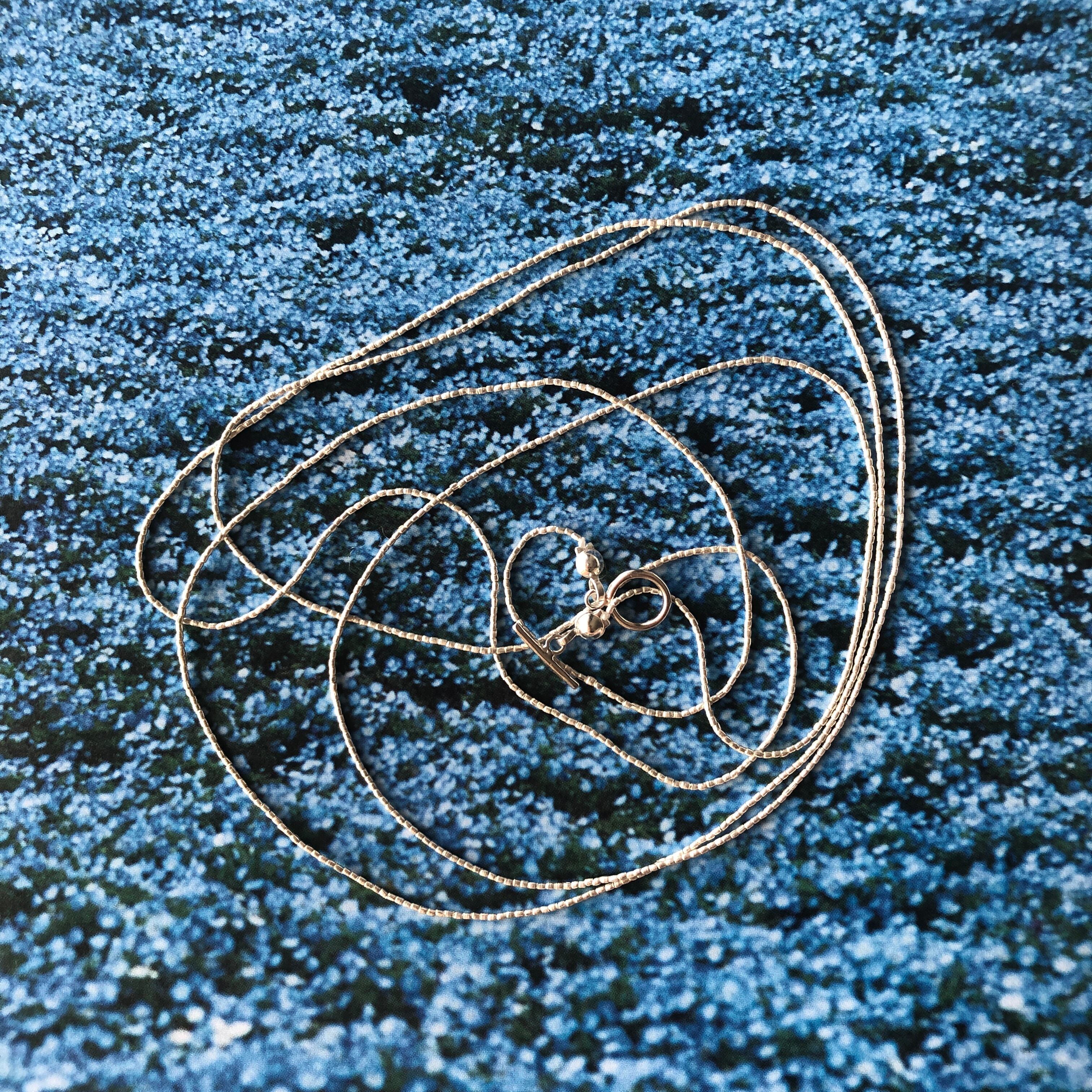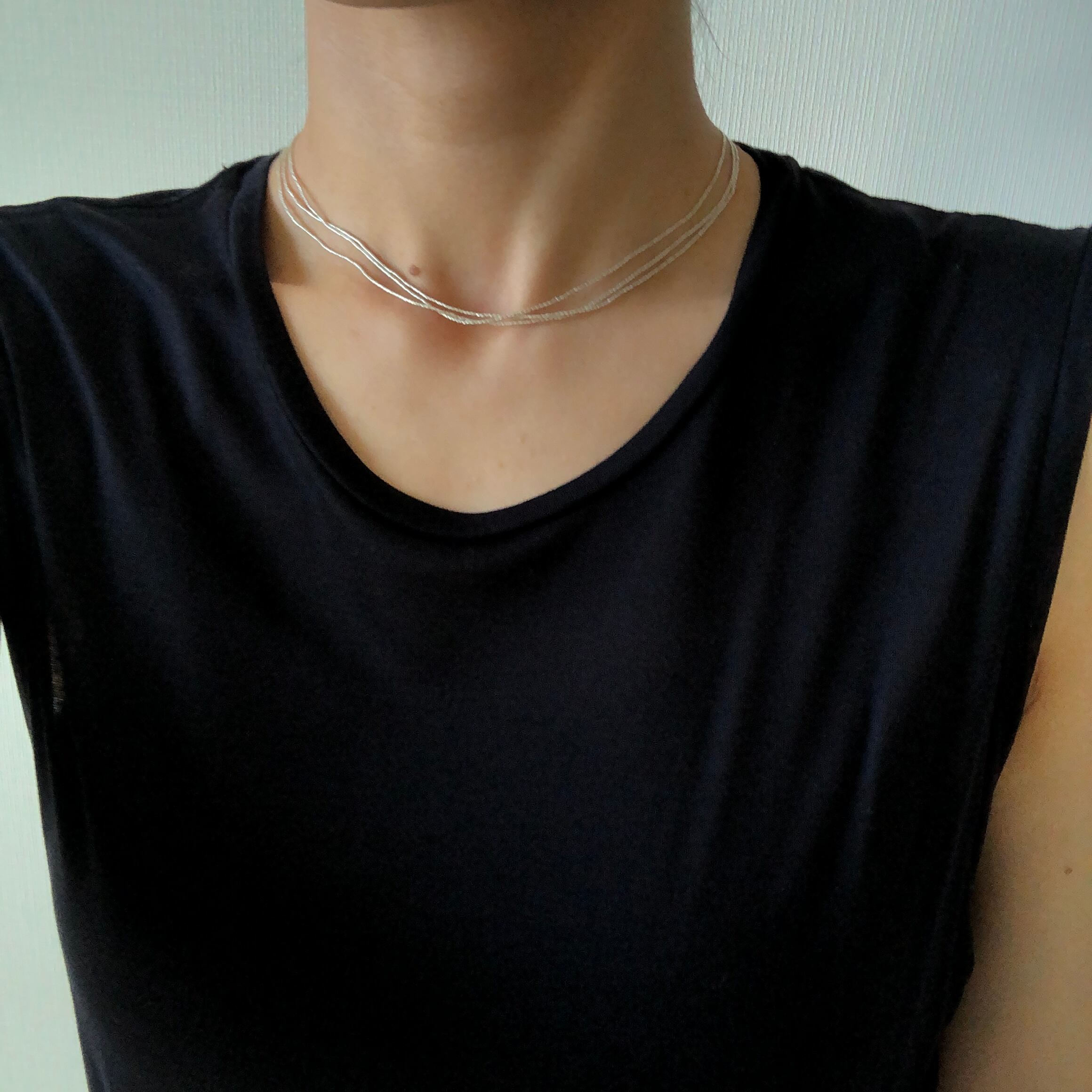 ビーズがかなり小さいので、シルバーのチェーンネックレスのようにも見えます。