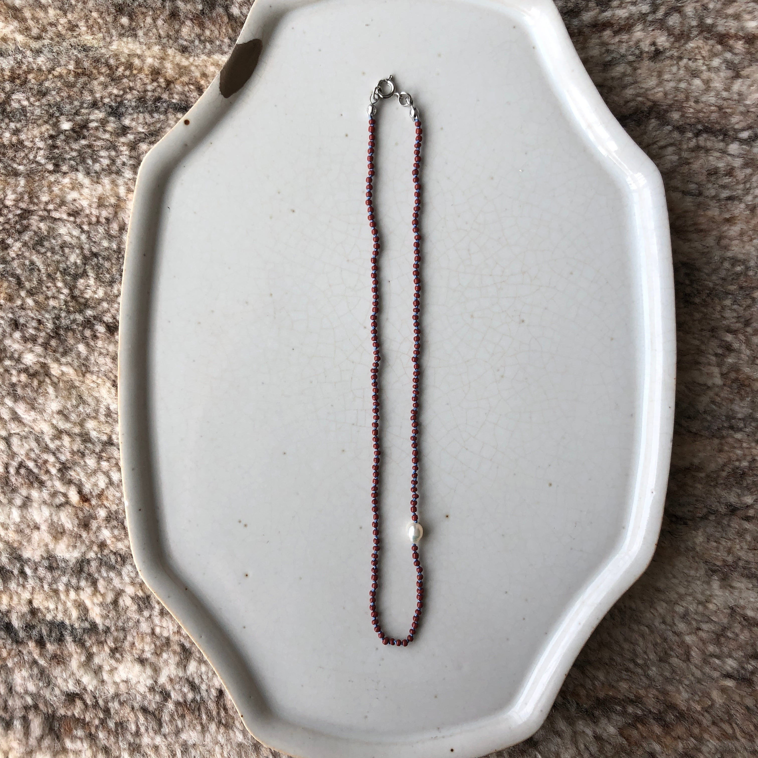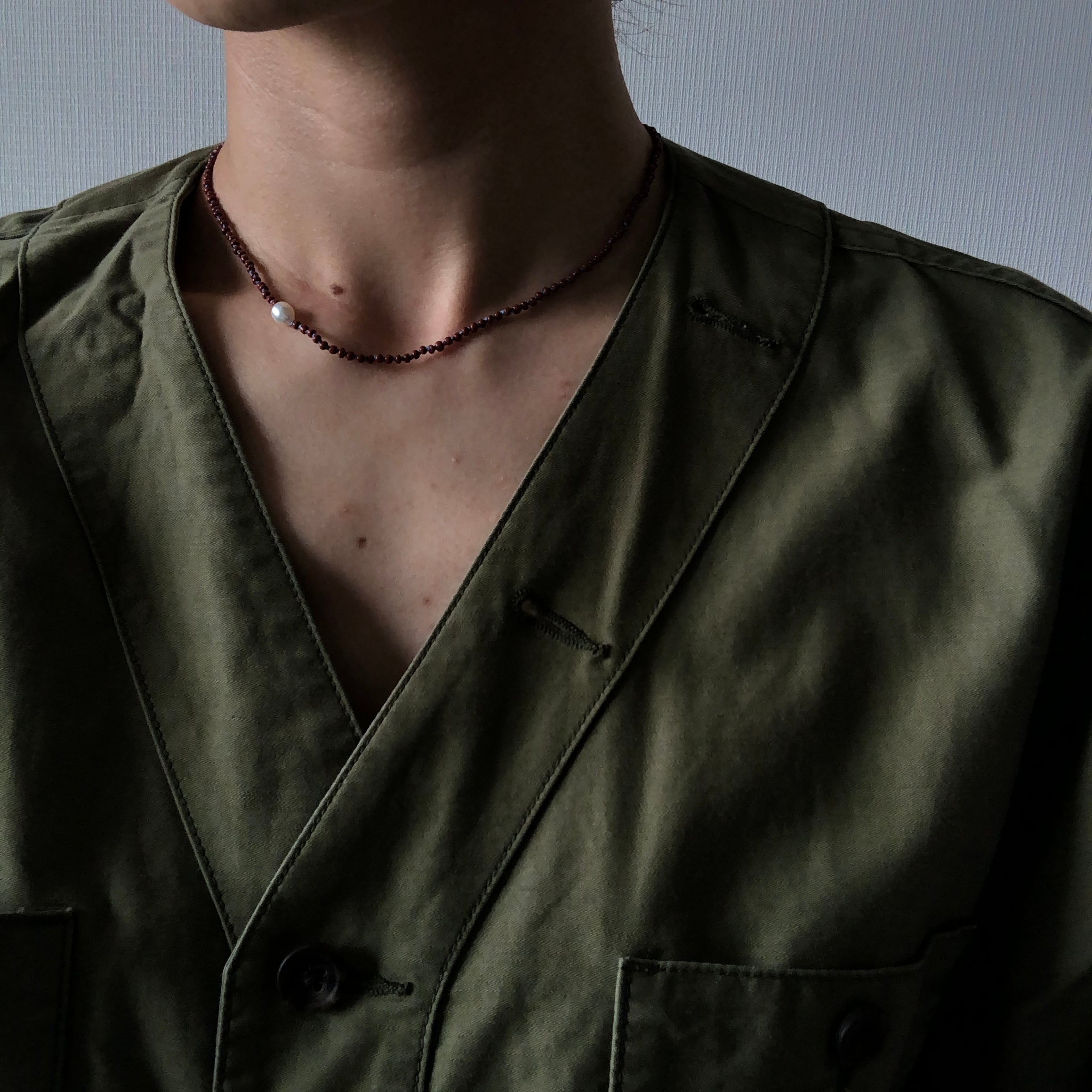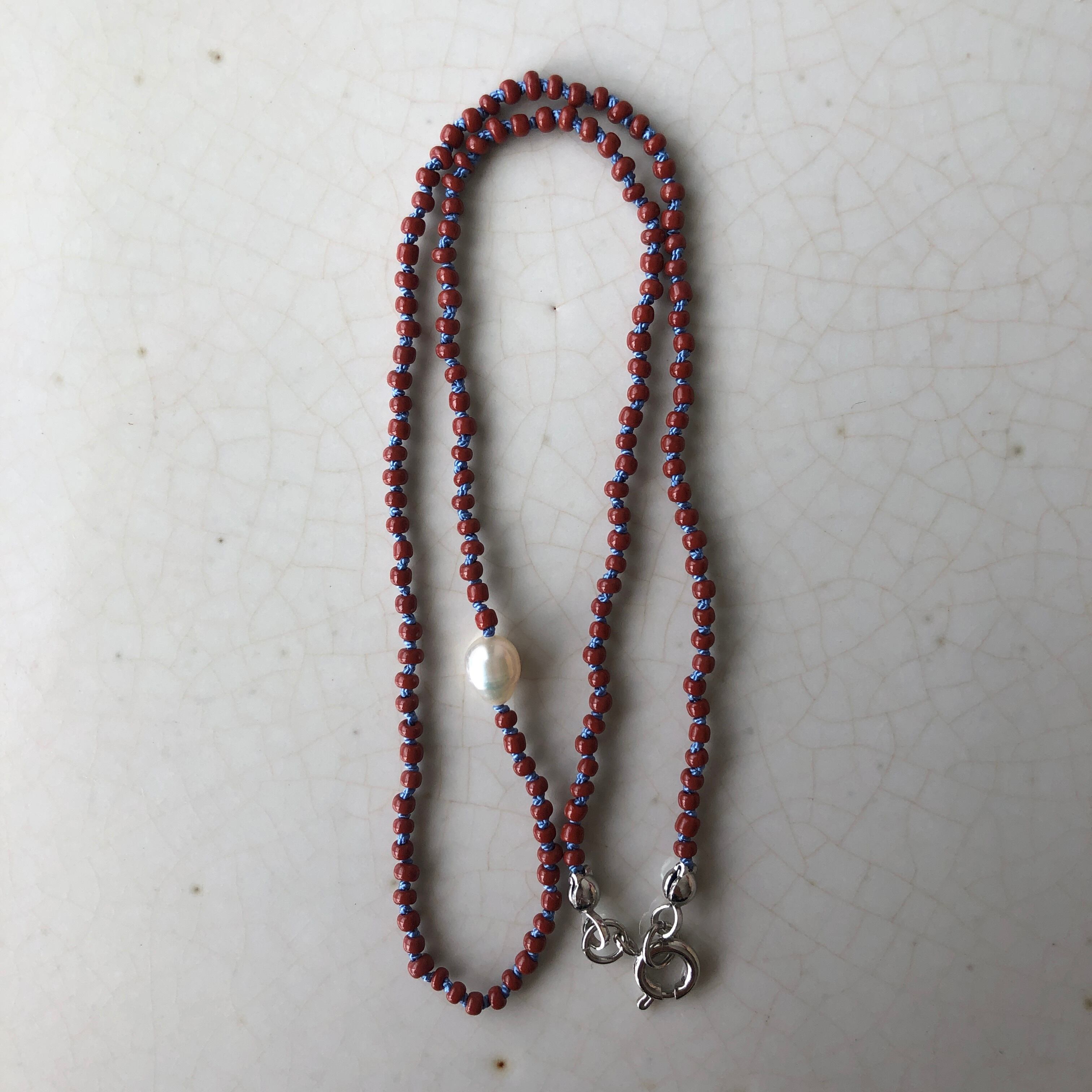 BROWN BEADSと淡水パールのシルクコードネックレス