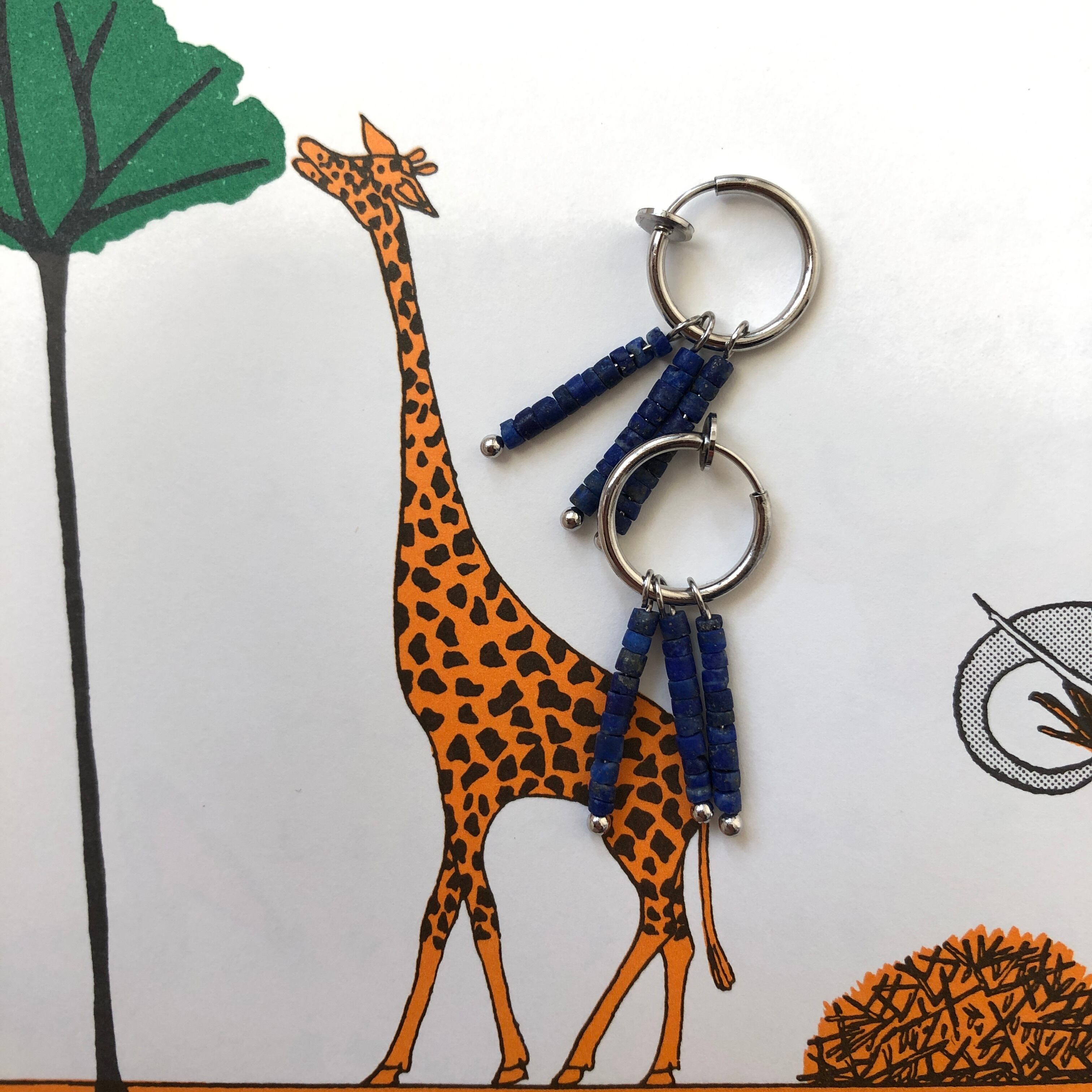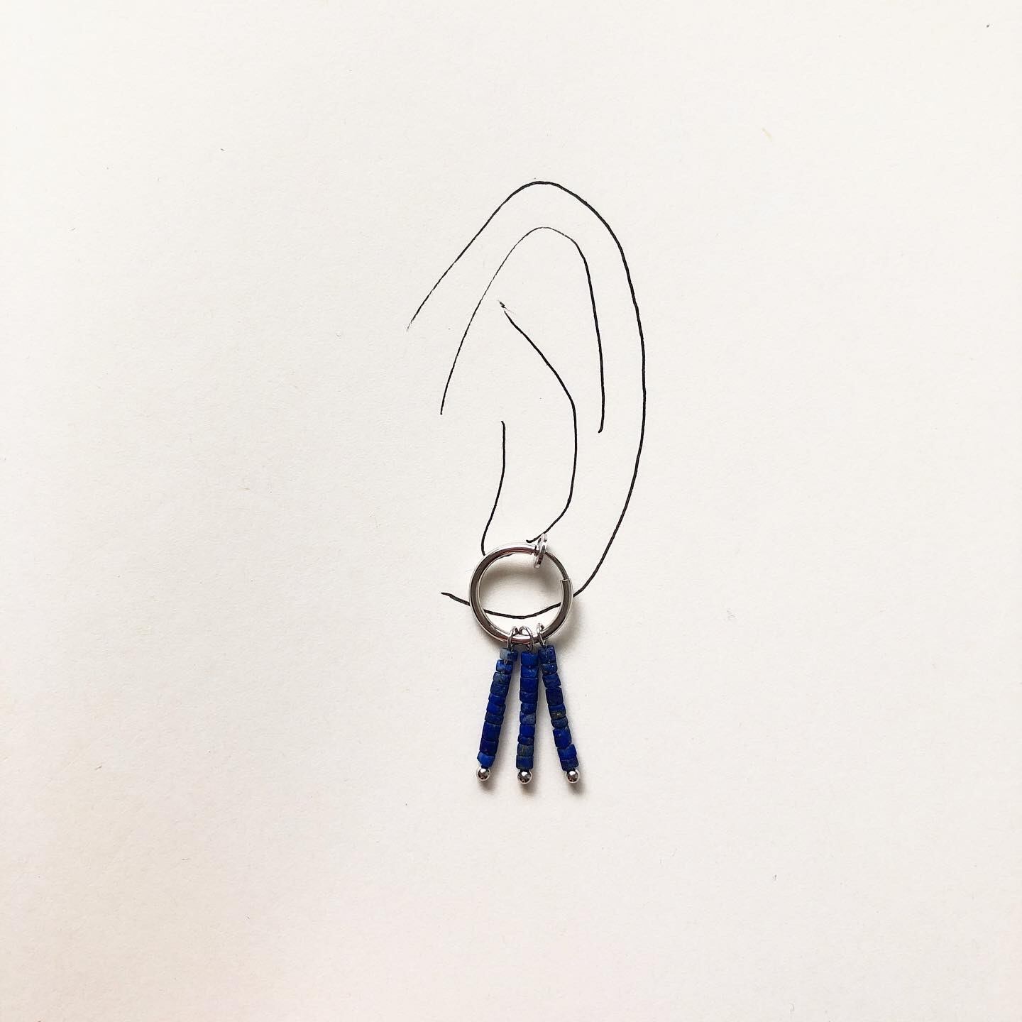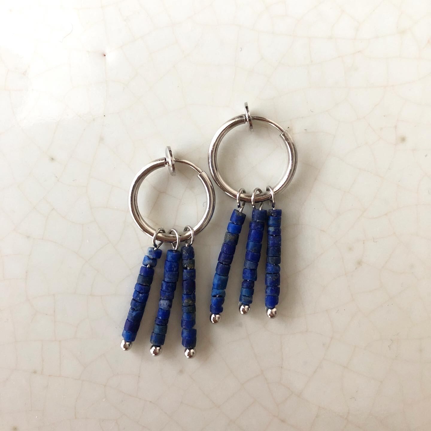 ラピスラズリのビーズで作った揺れるイヤリングです。