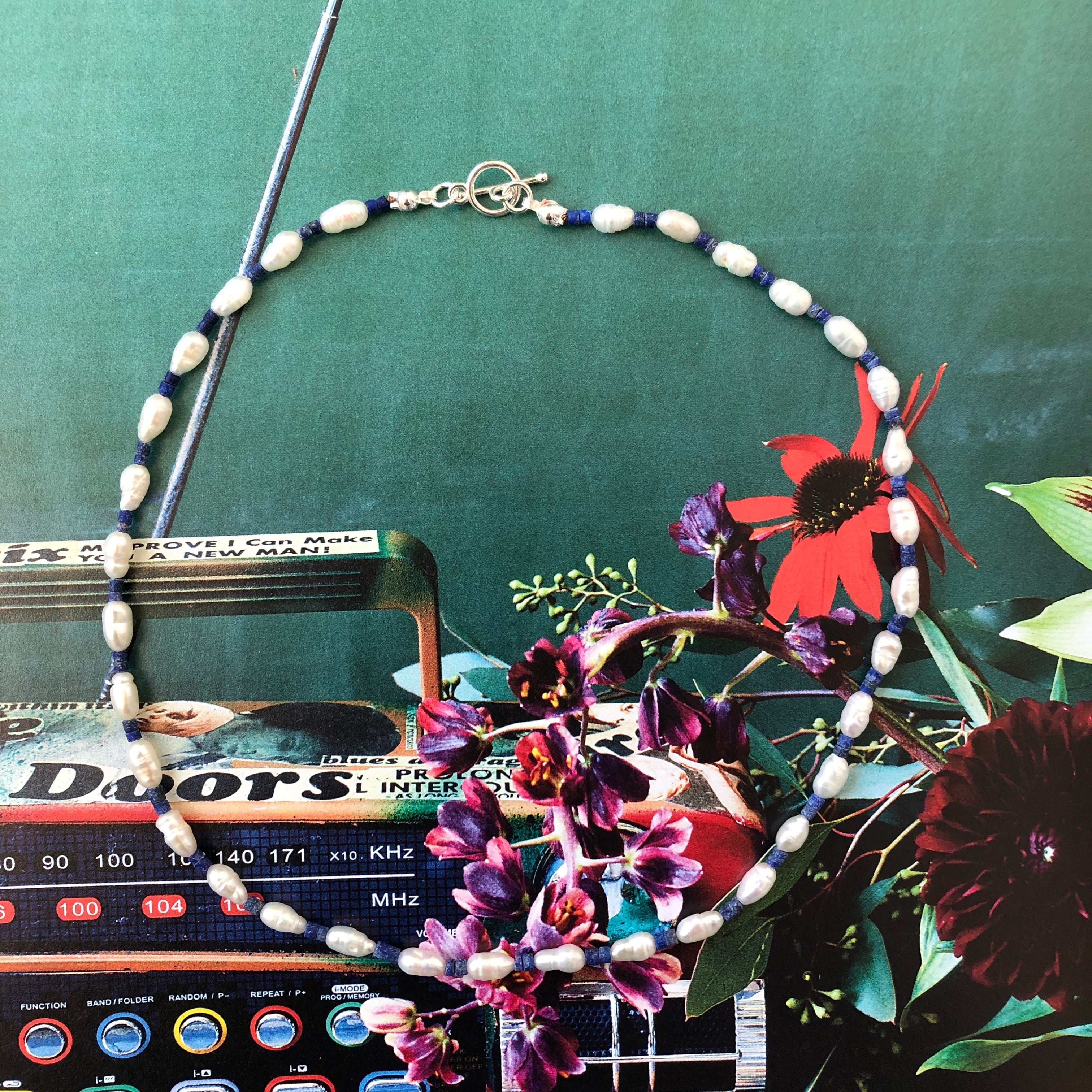 material 淡水パール、天然石(ラピスラズリ)、カレンシルバー、シルバー、ナイロンコード
