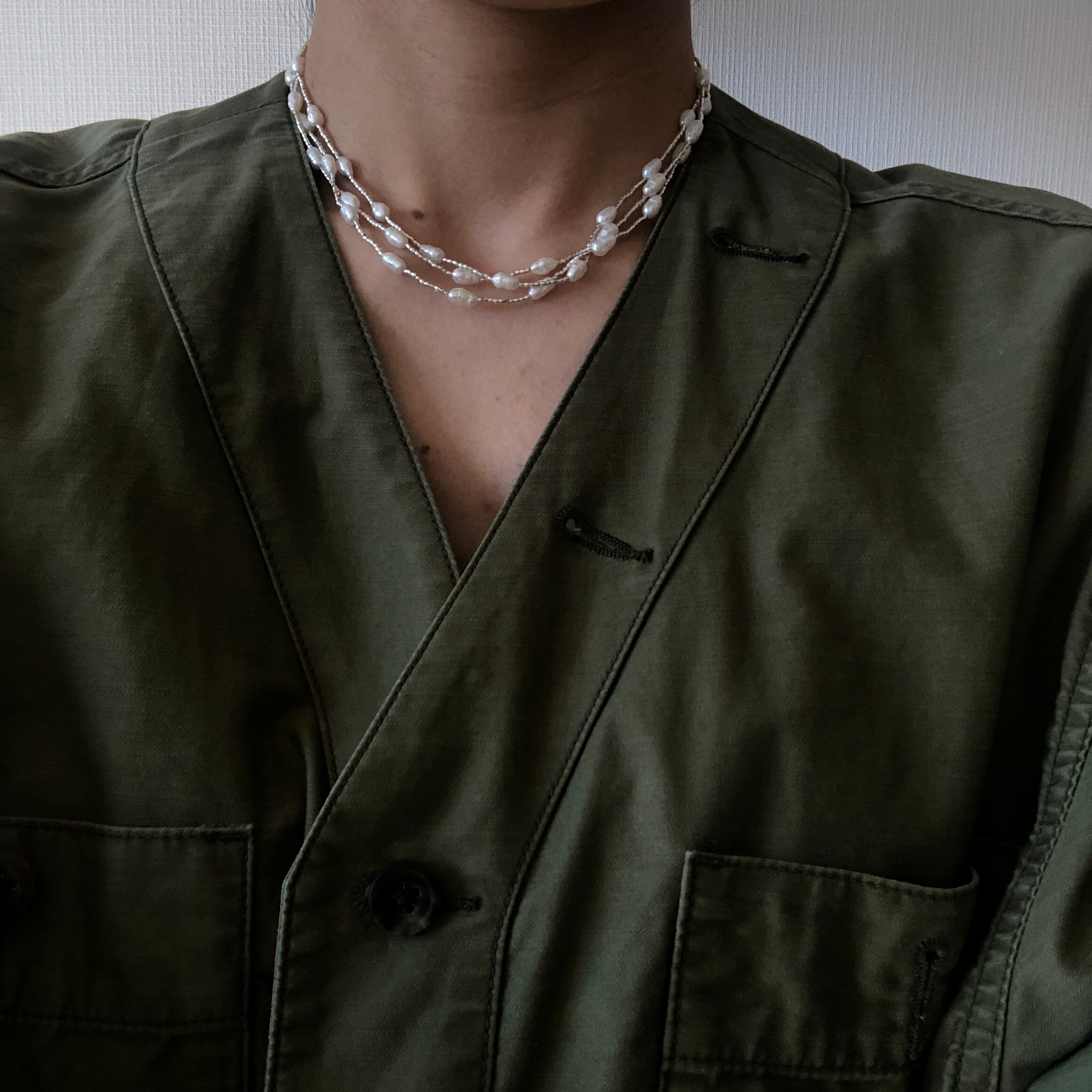 長めの117cmで製作しましたので、2連、3連のネックレスとしても楽しんでいただけます。
