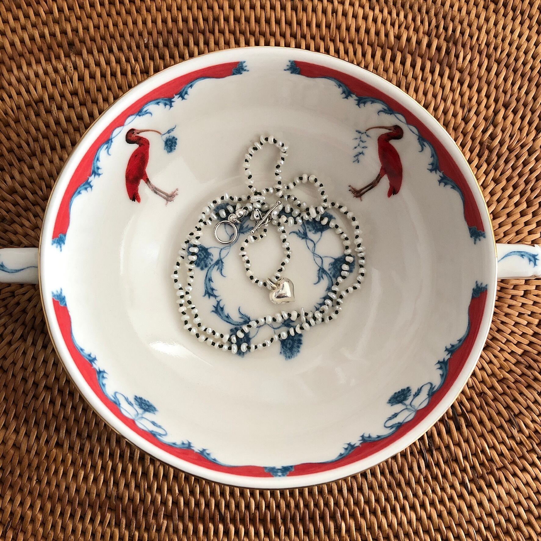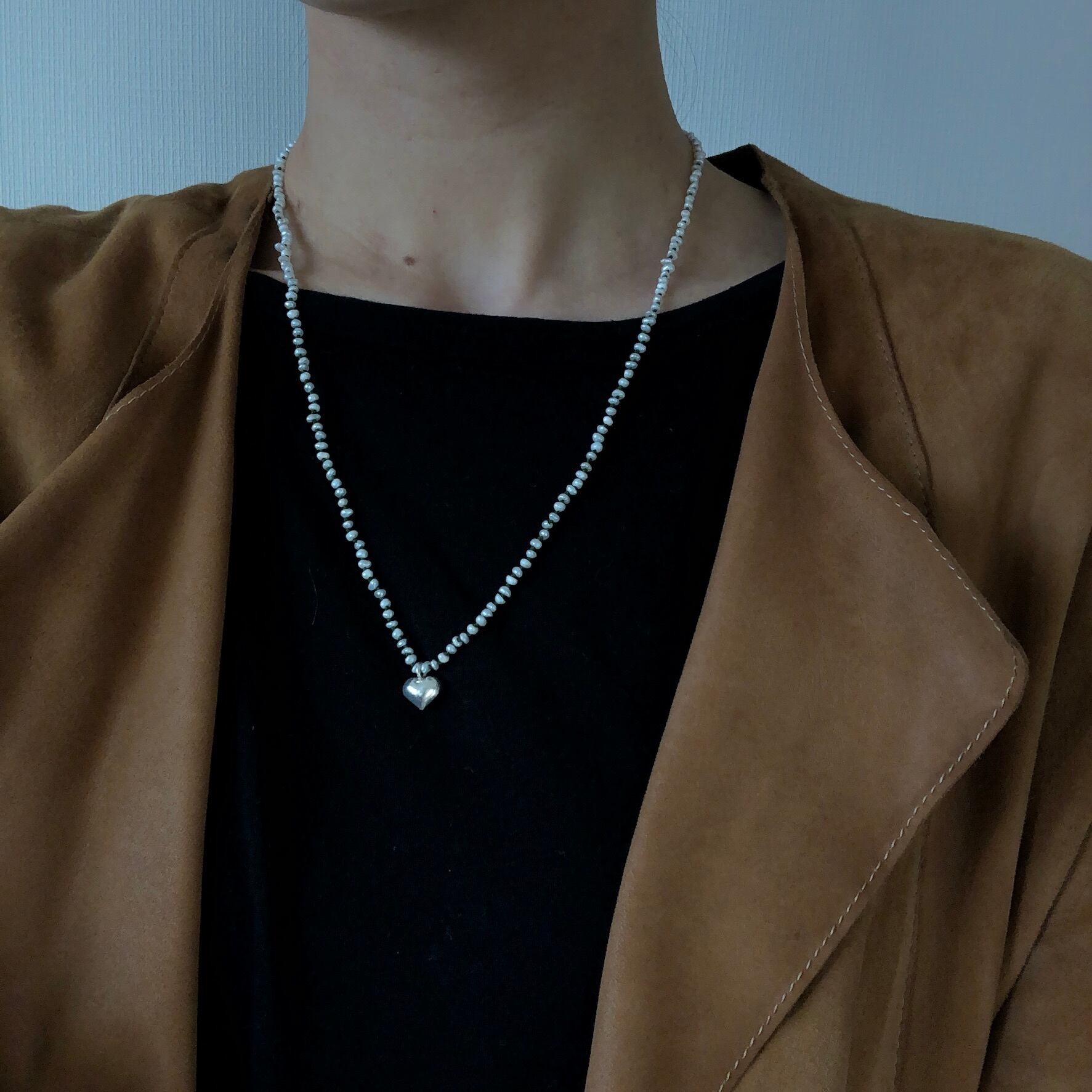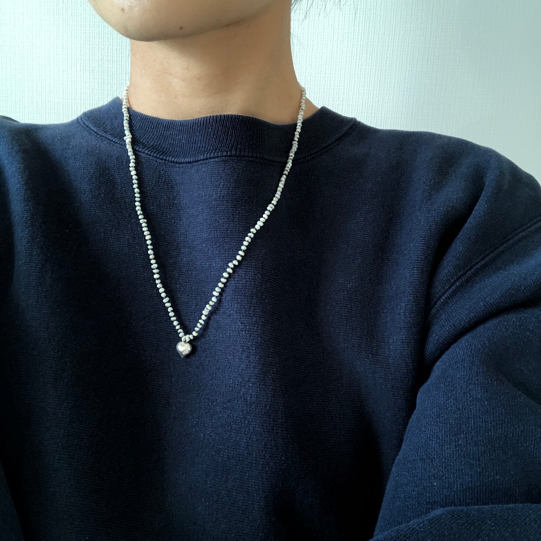 極小のケシパールをシルクコードでひと粒ひと粒結んだネックレスです。
