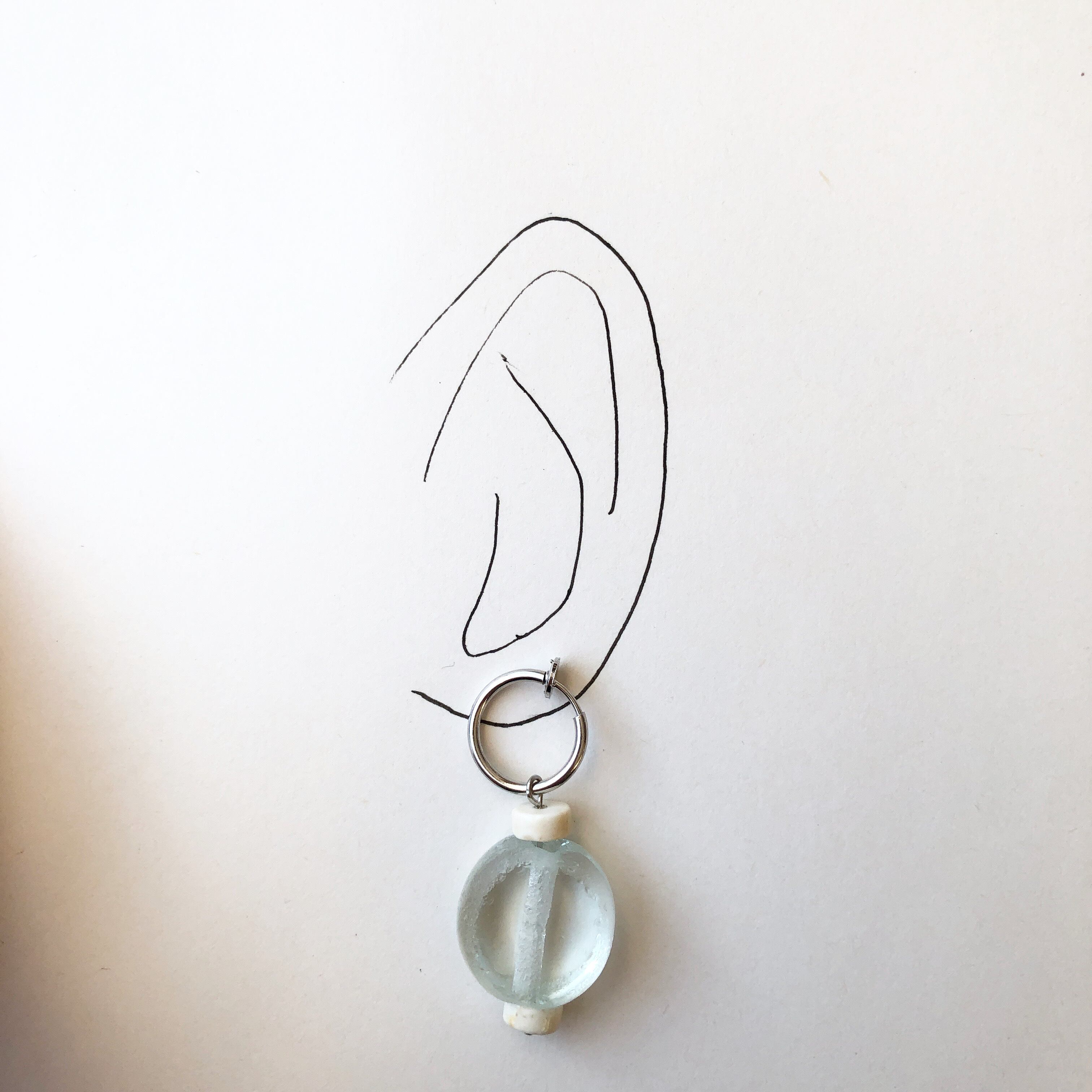 白っぽいトーンでまとめたクリーンなイメージのイヤリングはどんなお洋服とも相性が良さそうです。イヤリングの大きさは写真2枚目をご参照ください。