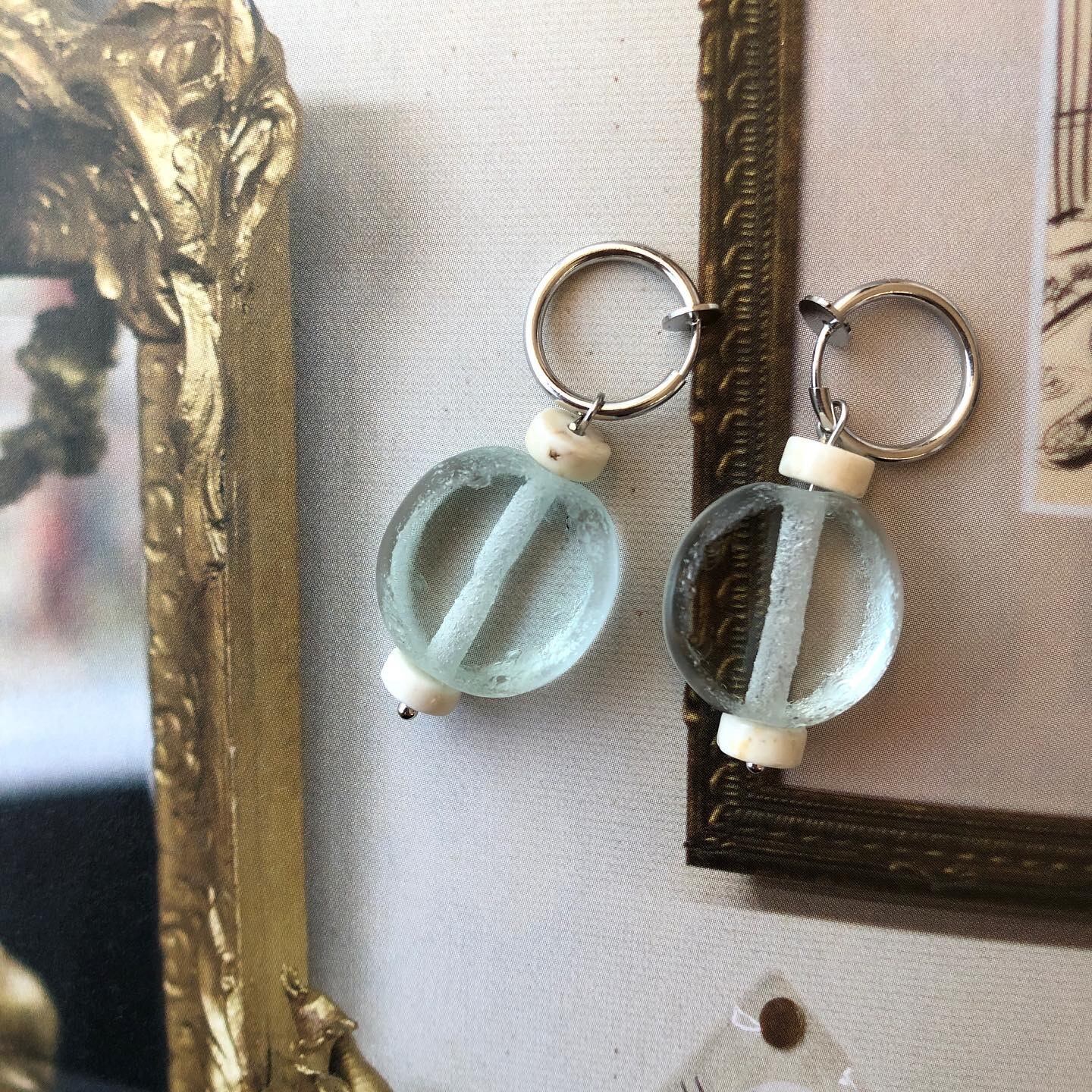 リサイクルガラスと天然石ハウライトを組み合わせたイヤリングです。