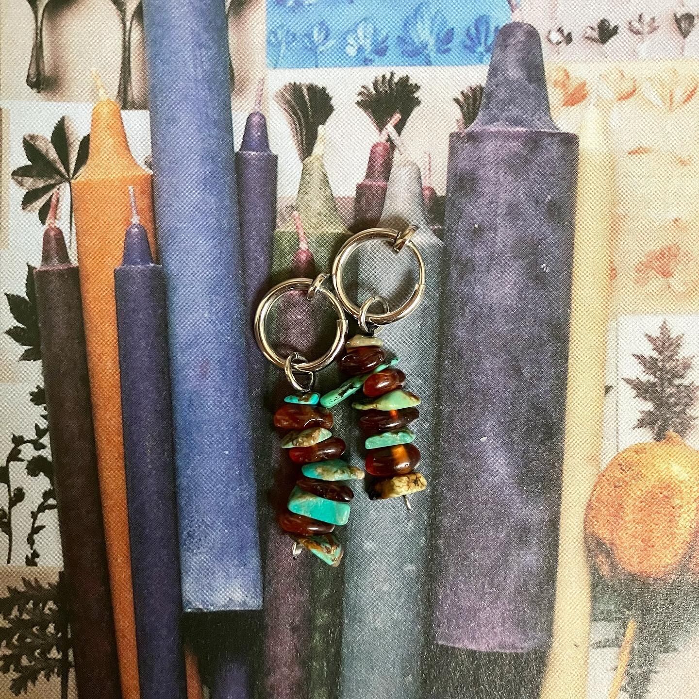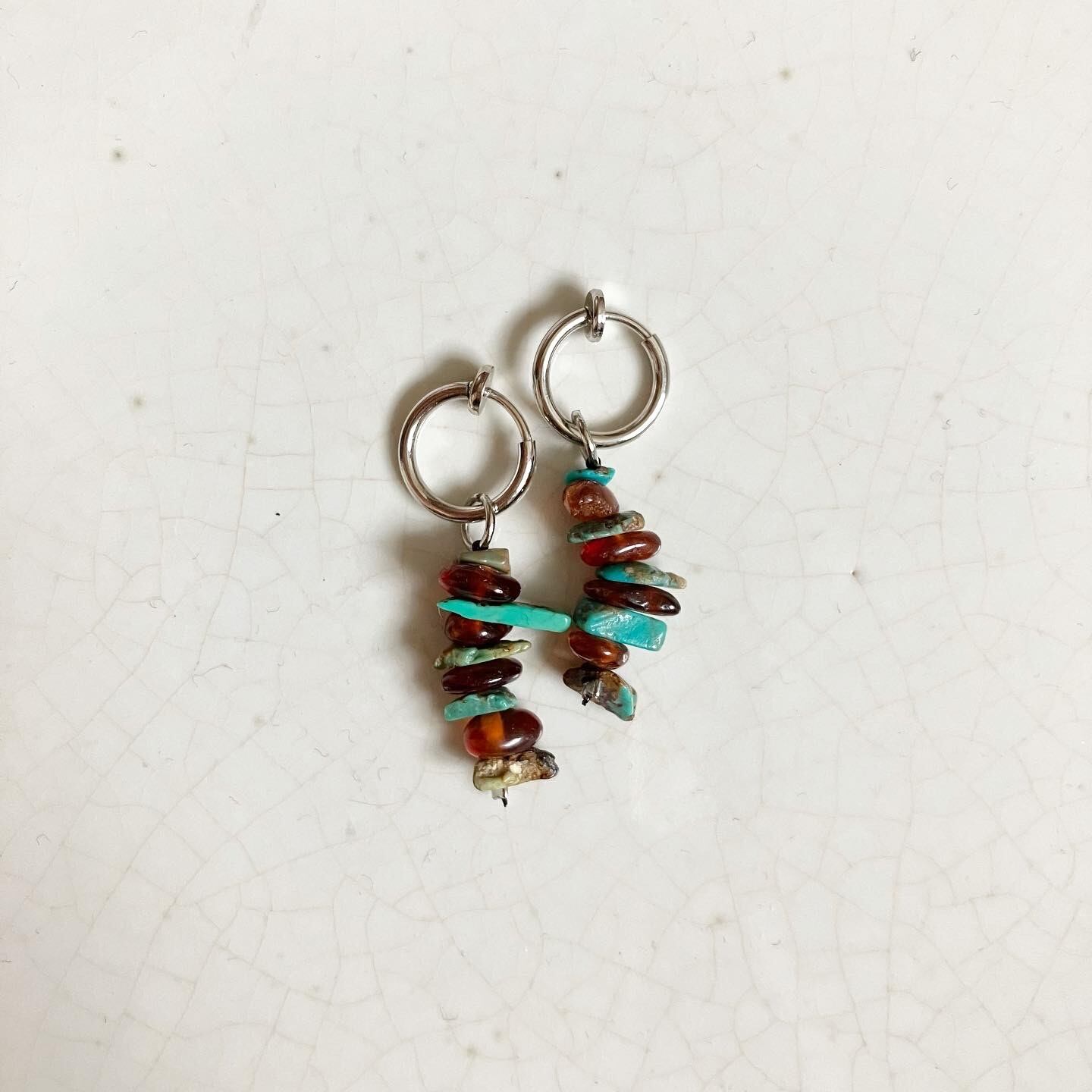 2つと同じもののない、天然石の細石ビーズを使用したイヤリングです。