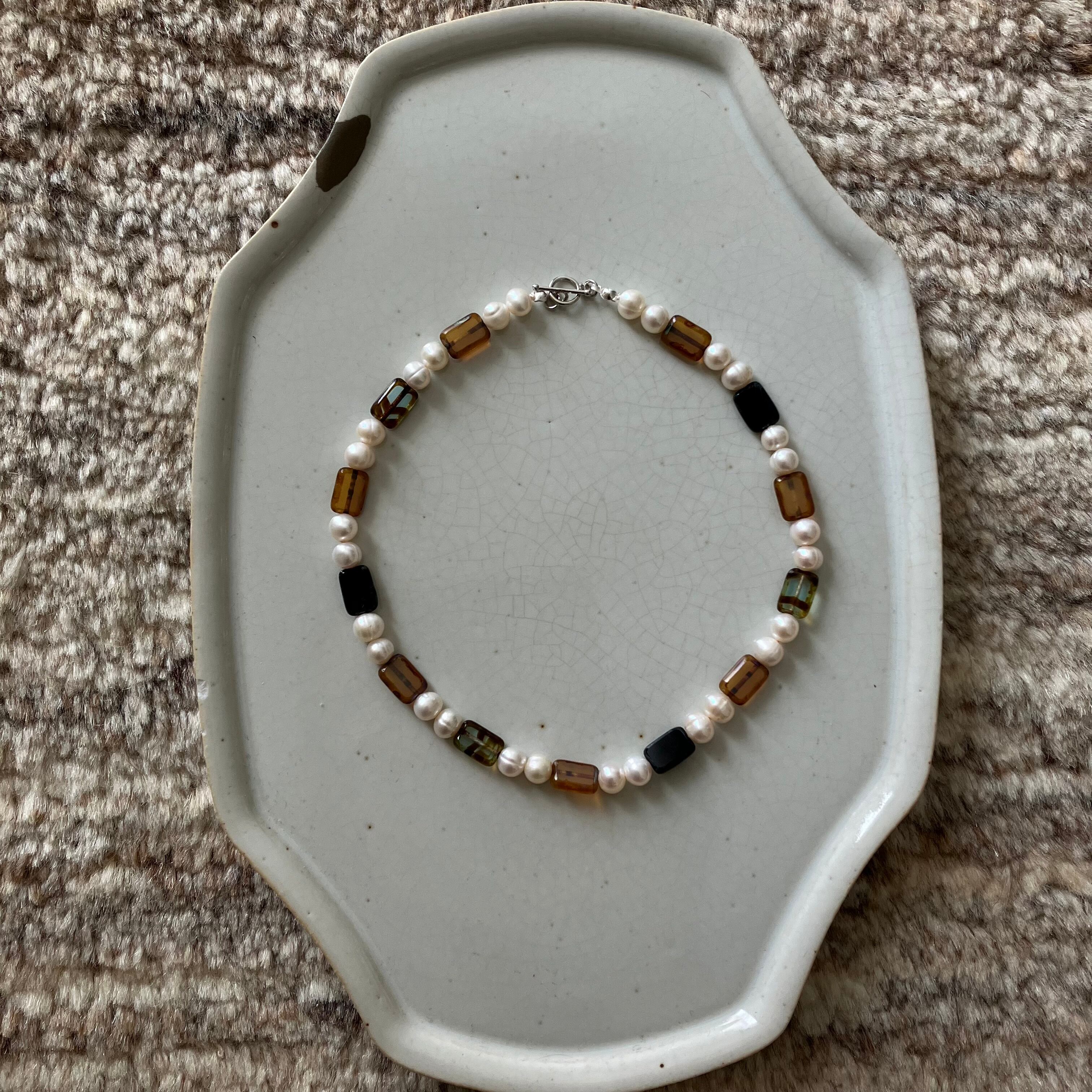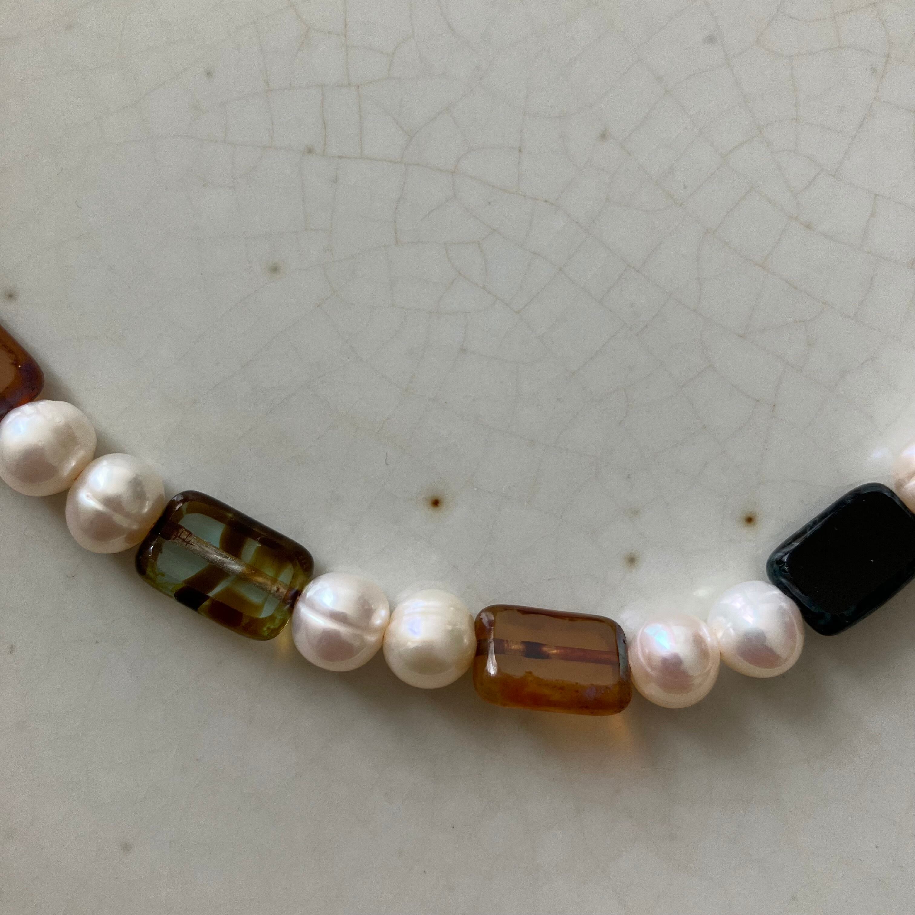 material 淡水パール、チェコビーズ、シルバー(留め具)