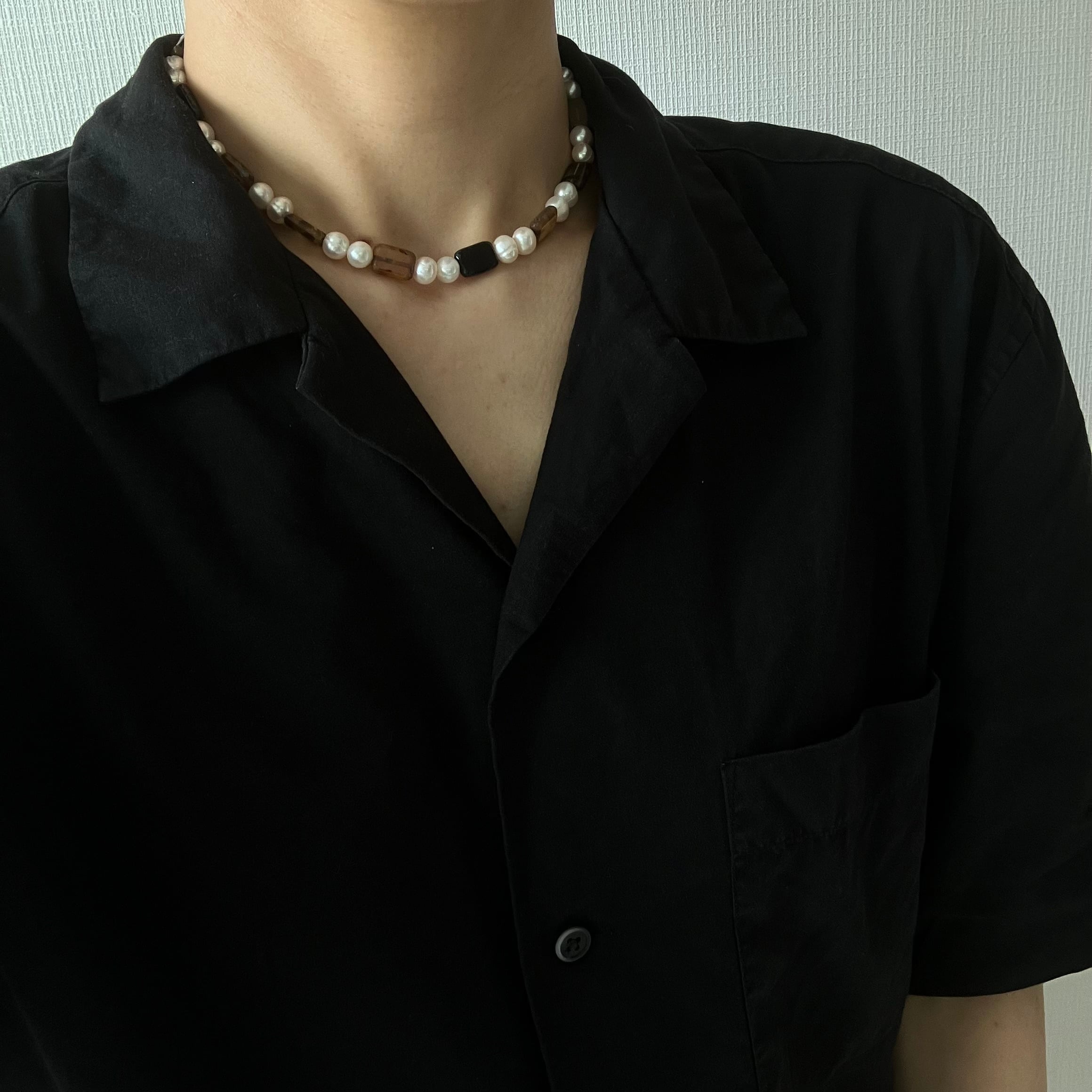 カジュアルにもフォーマルにも使えそうなパールのショートネックレスです。