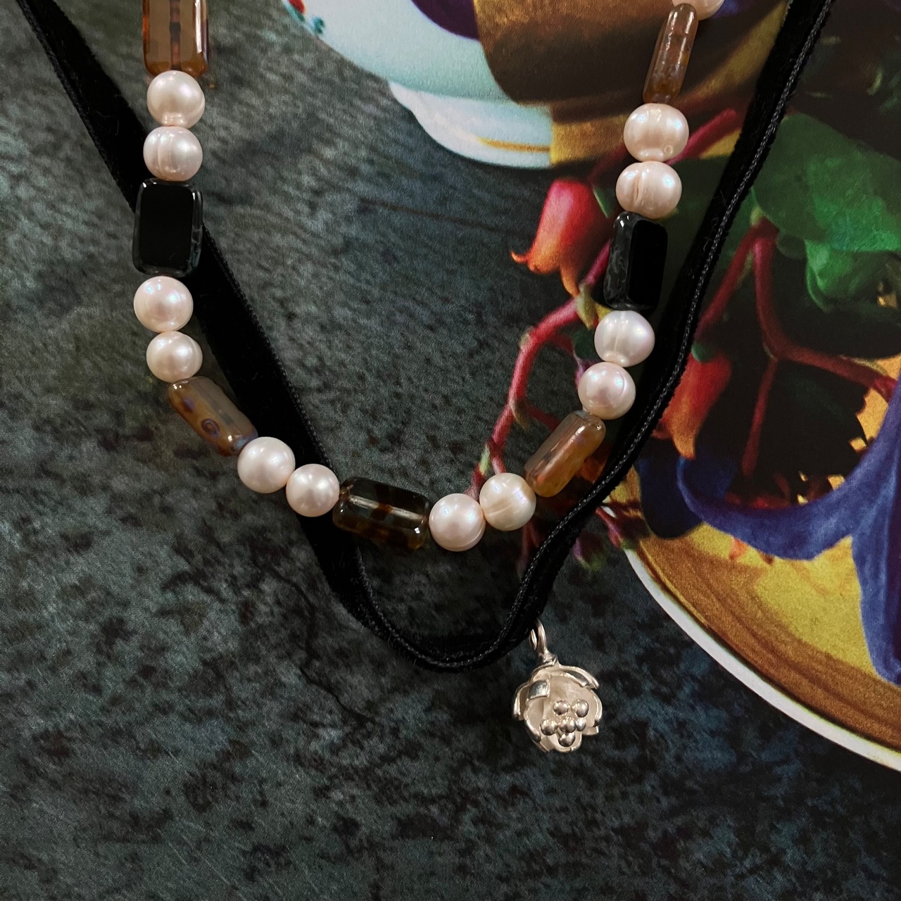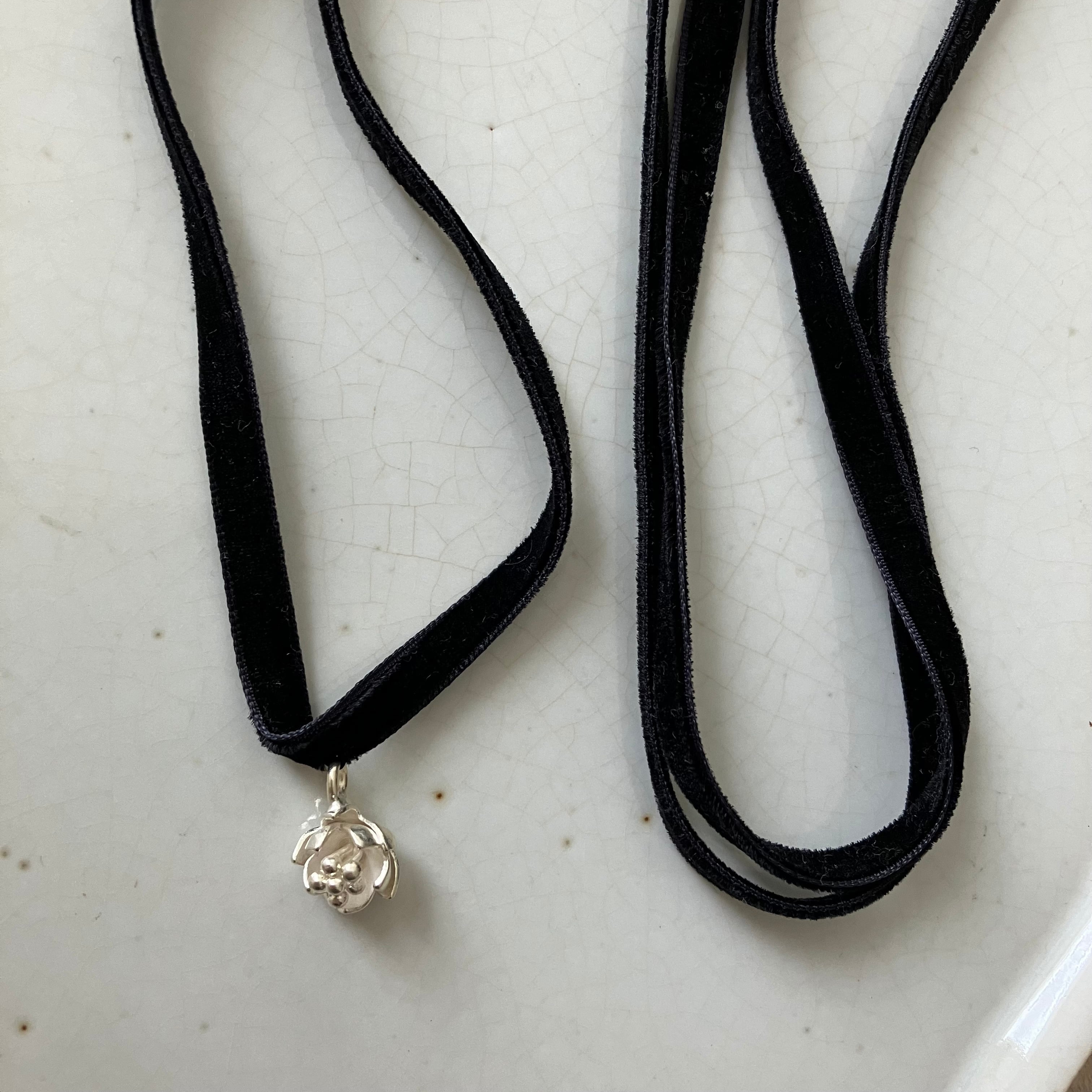 ベロアリボンにカレンシルバーのモチーフを合わせたチョーカーです。