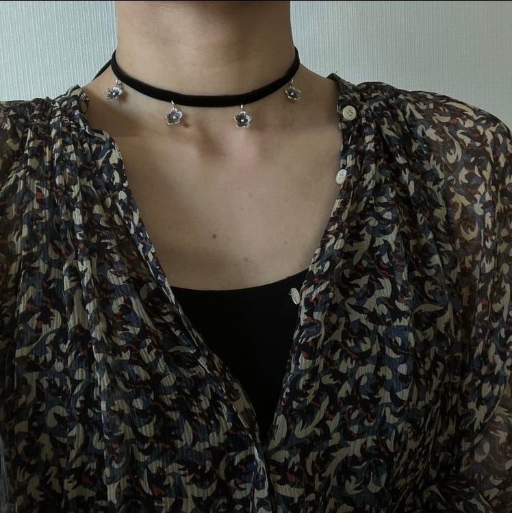 ベロアリボンにカレンシルバーのモチーフを合わせたチョーカーです。